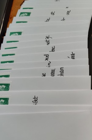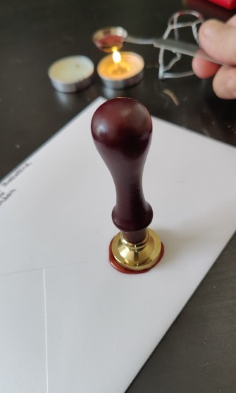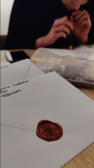 Nous commandons les pochettes sur Aliexpress en priant pour les recevoir avant l’été. Tandis que Laurine termine le design des différents volets, on s'attèle à trouver du papier à Cultura, des enveloppes sur Amazon, des roll-on de colle chez Action et autre massicot qui seront nécessaires à l’assemblage. On commande le tampon et la cire pour faire les cachets.